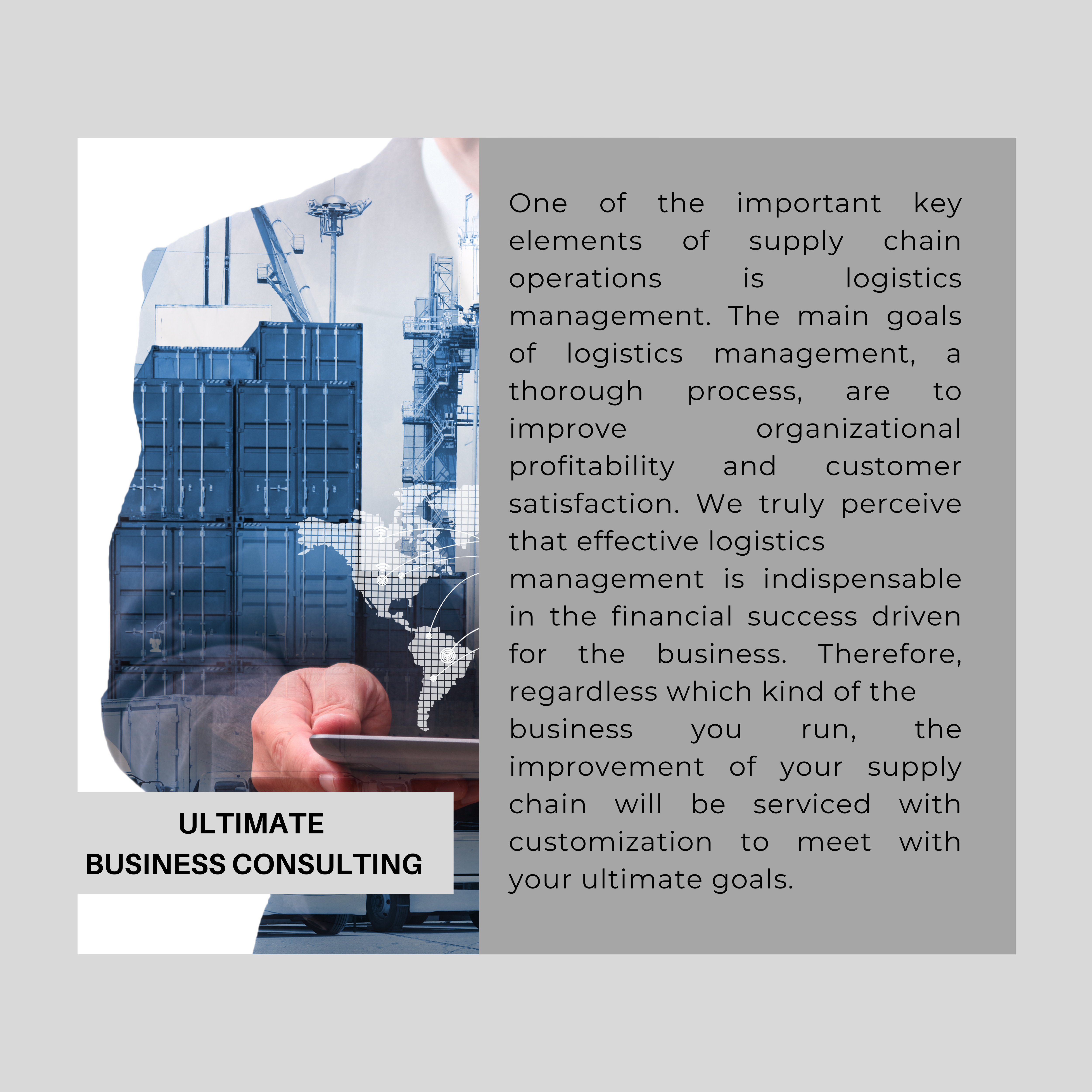 We truly believe that in a world where there is business, there is logistics. Where there is logistics, a service provider comes to ensure that your purchasing order will be delivered on the right direction in the right amount of time at the right place in the right quality.